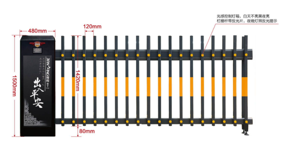 此款產(chǎn)品可定制燈箱或廣告,直流電機自帶遇阻反彈,經(jīng)典配色,時尚大氣,超小間距110-120mm,每個欄柵桿都配備反光圓點,緩沖吸盤全新工藝支撐桿,確保安全穩(wěn)定!