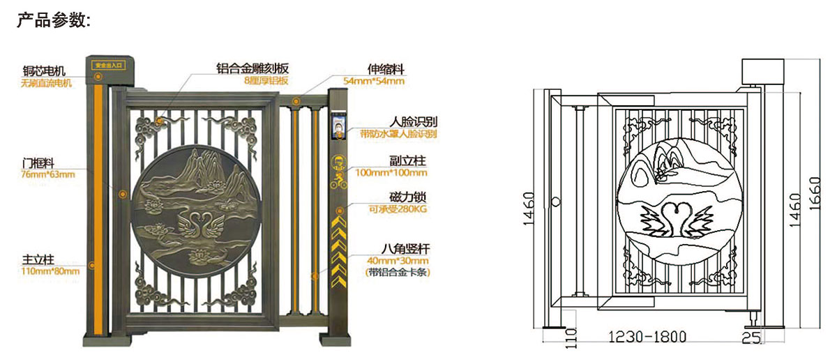 高強度鋁合金高檔小區(qū)私人定制智能通道門,具有快走慢停的功能,運行過程中速度較快,開關門即將到位的時候,立即減速保證門體開關平穩(wěn)運行,無論自動型,手動型,均可搭配門禁控制系統(tǒng)使用,對進出人員身份管控,安全性強,可遙控遠距離開關門,方便現(xiàn)場使用。高強度鋁合金通道門主要用于智慧社區(qū),機關學校,企業(yè)事業(yè)、機關院校、等人行通道。