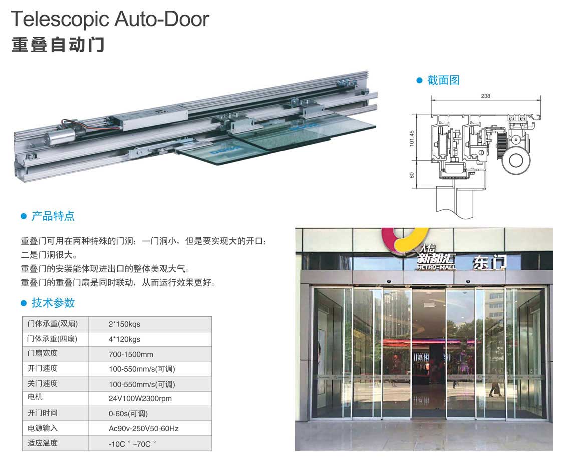 重疊自動(dòng)門產(chǎn)品,請仔細(xì)瀏覽本頁面。如您還有疑問,請撥打服務(wù)電話,我們將免費(fèi)為您提供重疊自動(dòng)門的款式、價(jià)格、生產(chǎn)廠家、安裝維修等方面的咨詢服務(wù)。