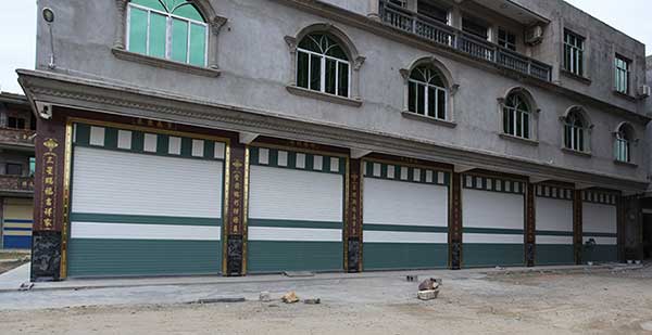 采用鋁合金作為材質的卷簾門!卷簾門就是那種面板為多塊連接而成,形成柔性的門板。然后可以將整面門向上拉起,卷在頂部箱子內的閘門。