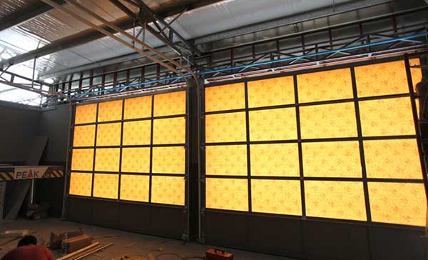 (4)透明板材:采用德國原料聚碳酸酯PC板,厚度為4mm-5mm,可根據(jù)門寬及及窗寬來選擇.有優(yōu)良的抗紫外線功能,其抗沖擊力是鋼化玻璃的100倍。