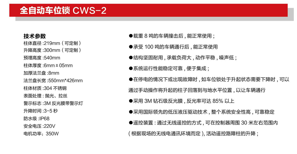 產(chǎn)品名稱:全自動車位鎖 CWS-2