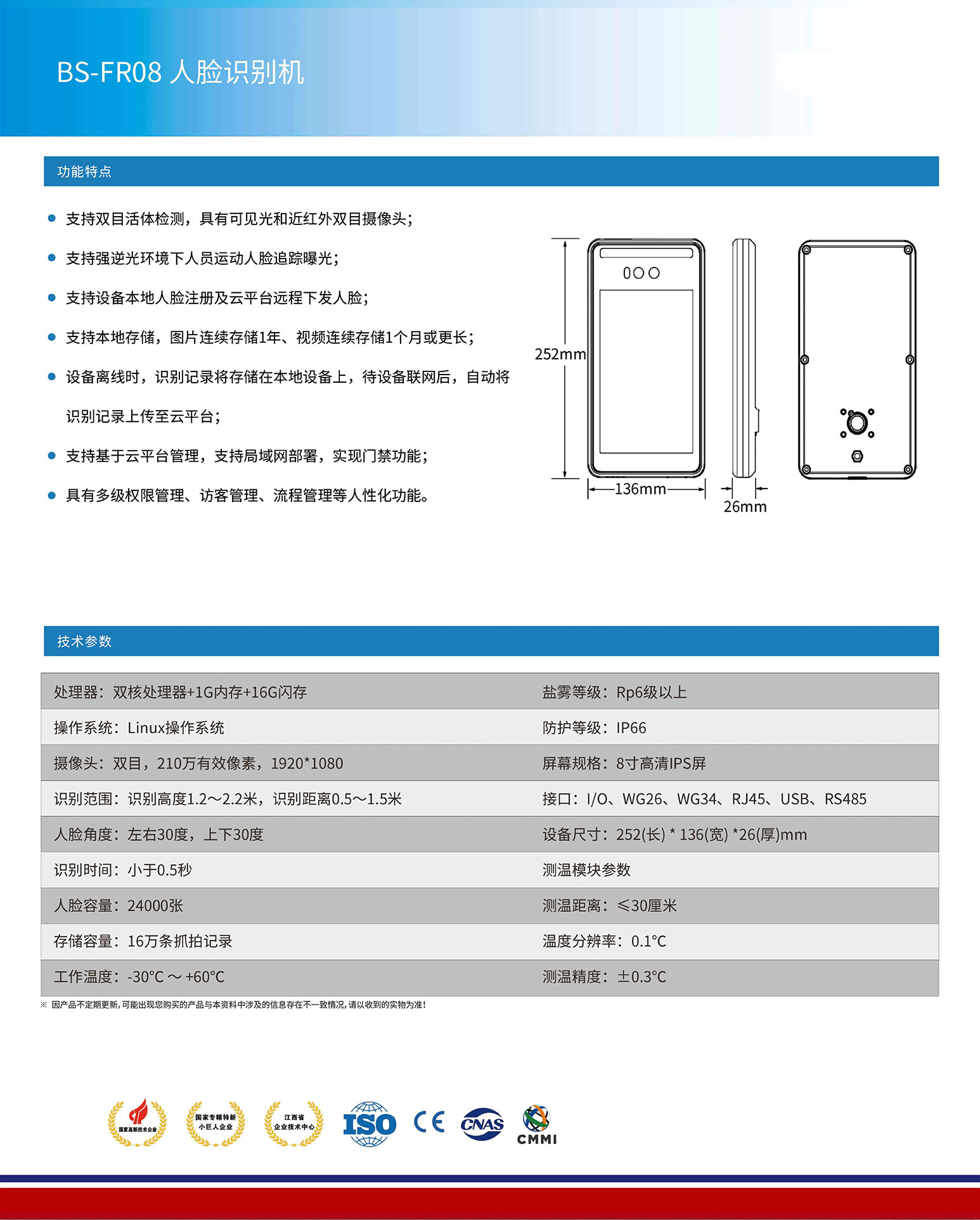 ● 支持雙目活體檢測,具有可見光和近紅外雙目攝像頭;