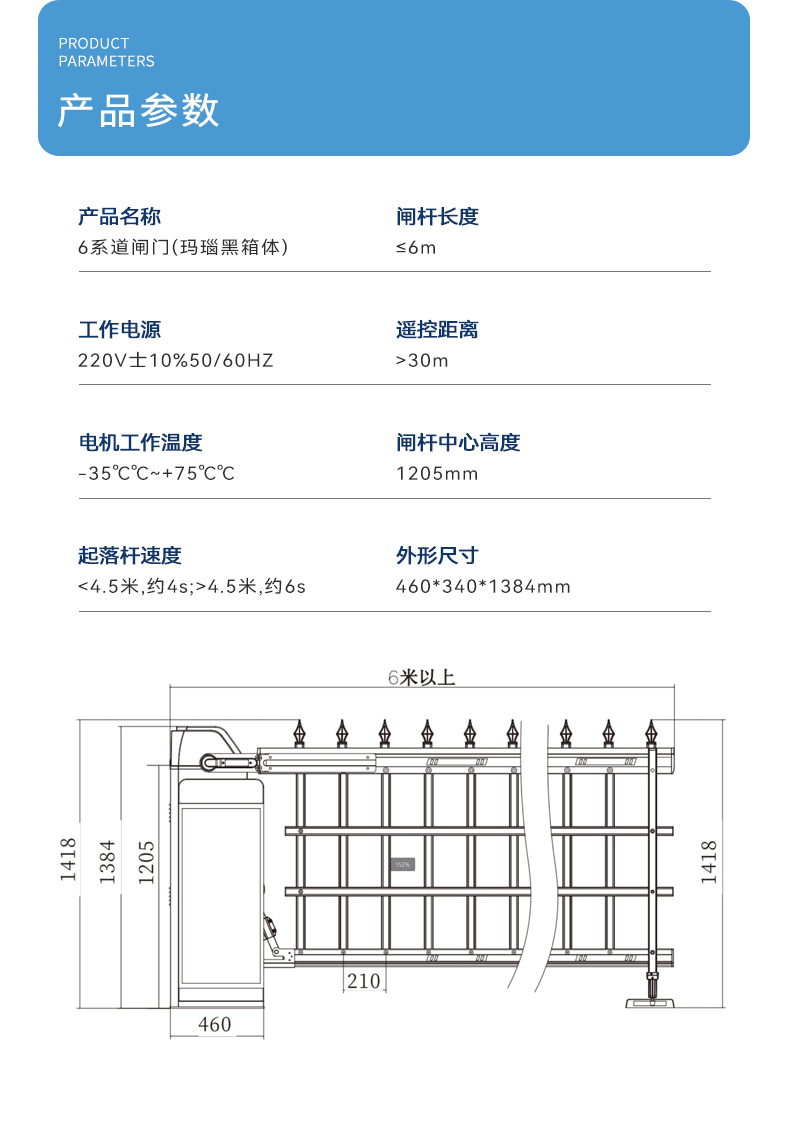 高度1.42米,長(zhǎng)度可達(dá)6米,起桿速度4~6s