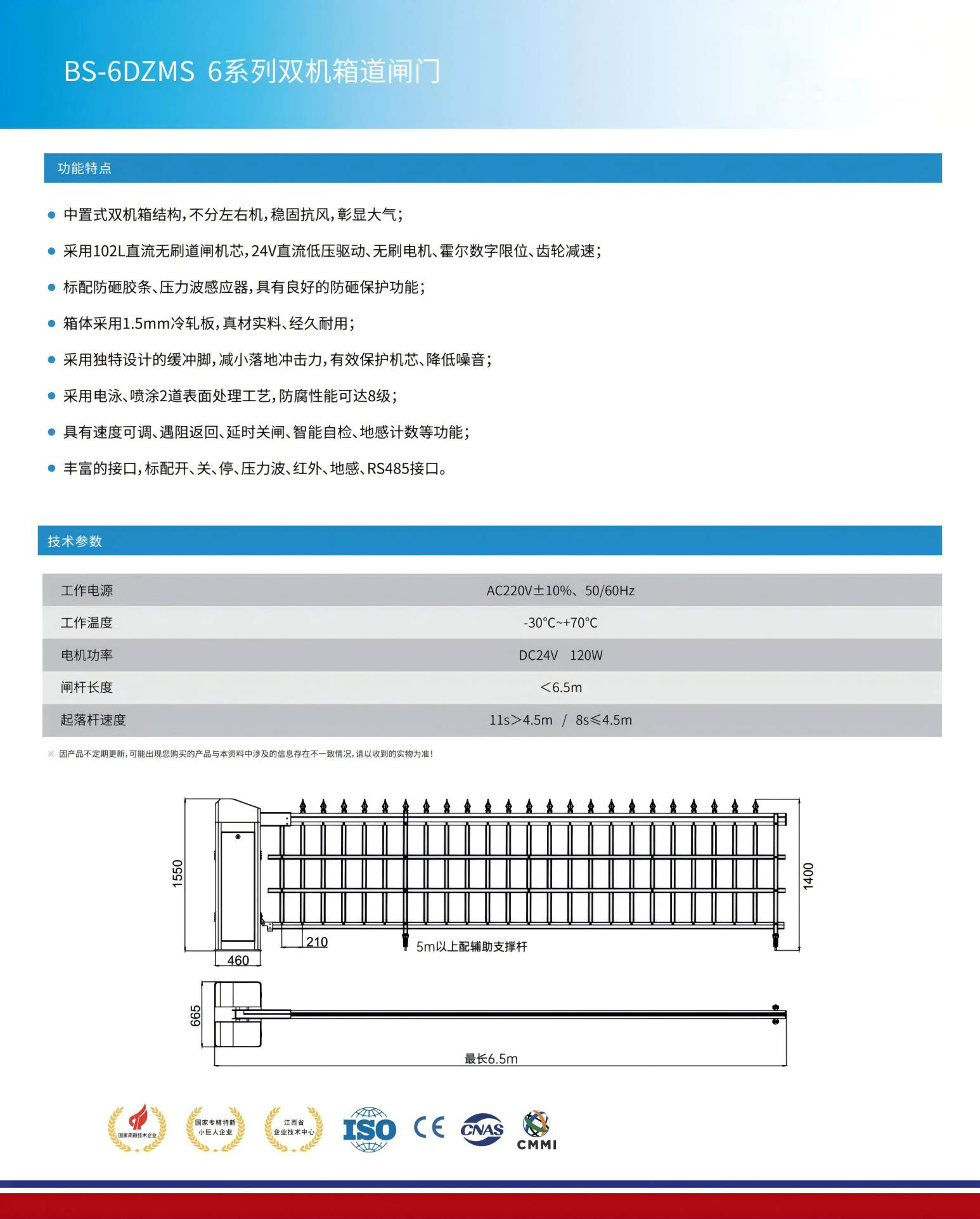 ● 采用102L直流無刷道閘機芯,24V直流低壓驅動、無刷電機、霍爾數(shù)字限位、齒輪減速;