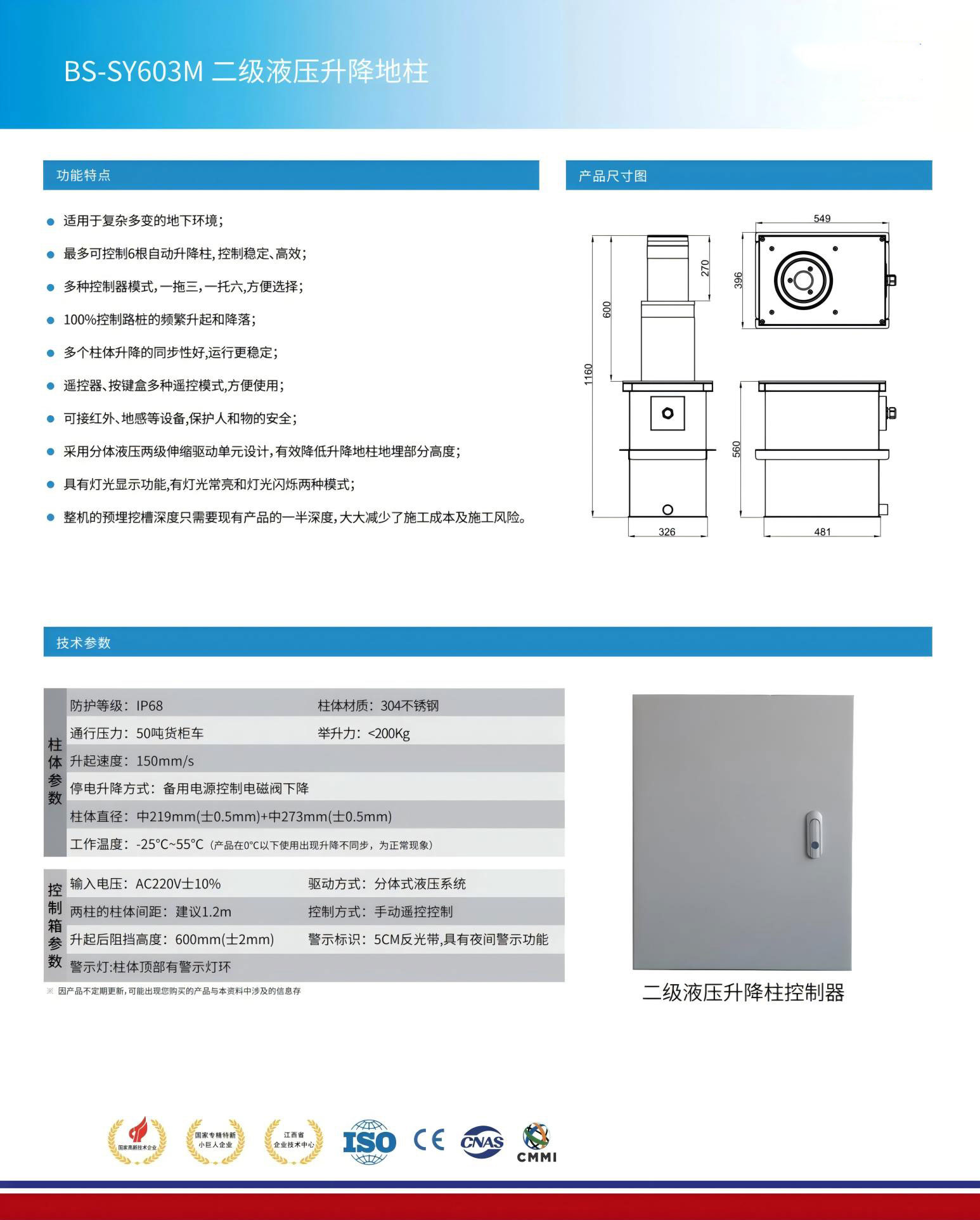 ● 采用分體液壓兩級伸縮驅(qū)動單元設計,有效降低升降地柱地埋部分高度;