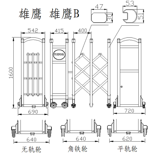 南北德信NB-雄鷹不銹鋼伸縮門門體采用公司自行加工優(yōu)質(zhì)不銹鋼和鋁型材等材料制作,主框架采用立體四維平行原理鉸接,伸縮靈活。伸縮門主要由門體、驅(qū)動(dòng)器、控制系統(tǒng)構(gòu)成。驅(qū)動(dòng)器采用特種電機(jī)驅(qū)動(dòng),蝸輪蝸桿減速,并設(shè)有手動(dòng)離合器,停電時(shí)可手動(dòng)啟閉,控制系統(tǒng)有臺(tái)控及遙控兩種??膳鋫錆L動(dòng)顯示屏,顯示個(gè)性文字內(nèi)容。還可選配備智能紅外線探頭防碰撞裝置,運(yùn)行時(shí)遇人或異物20-30CM可自動(dòng)返回運(yùn)行,從而保障車輛及行人的安全。適用于工礦企業(yè)、機(jī)關(guān)院校、娛樂場(chǎng)所、賓館飯店等庭院圍墻門。起到美化環(huán)境、改善企業(yè)面貌、提升企業(yè)形象;有助于營(yíng)造文明社會(huì)、文明企業(yè)、文明城市氣氛;
