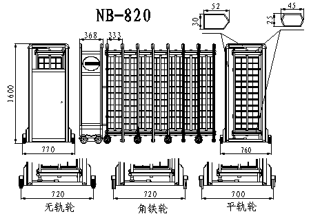 南北德信NB-820不銹鋼伸縮門門體采用公司自行加工優(yōu)質(zhì)不銹鋼和鋁型材等材料制作,主框架采用立體四維平行原理鉸接,伸縮靈活。伸縮門主要由門體、驅(qū)動器、控制系統(tǒng)構(gòu)成。驅(qū)動器采用特種電機(jī)驅(qū)動,蝸輪蝸桿減速,并設(shè)有手動離合器,停電時可手動啟閉,控制系統(tǒng)有臺控及遙控兩種??膳鋫錆L動顯示屏,顯示個性文字內(nèi)容。還可選配備智能紅外線探頭防碰撞裝置,運(yùn)行時遇人或異物20-30CM可自動返回運(yùn)行,從而保障車輛及行人的安全。適用于工礦企業(yè)、機(jī)關(guān)院校、娛樂場所、賓館飯店等庭院圍墻門。起到美化環(huán)境、改善企業(yè)面貌、提升企業(yè)形象;有助于營造文明社會、文明企業(yè)、文明城市氣氛;
