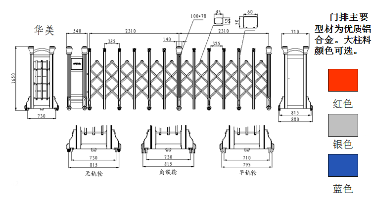 南北德信華美-H鋁合金伸縮門門體采用公司自行加工優(yōu)質(zhì)不銹鋼和鋁型材等材料制作,主框架采用立體四維平行原理鉸接,伸縮靈活。伸縮門主要由門體、驅(qū)動器、控制系統(tǒng)構(gòu)成。驅(qū)動器采用特種電機(jī)驅(qū)動,蝸輪蝸桿減速,并設(shè)有手動離合器,停電時可手動啟閉,控制系統(tǒng)有臺控及遙控兩種。可配備滾動顯示屏,顯示個性文字內(nèi)容。還可選配備智能紅外線探頭防碰撞裝置,運(yùn)行時遇人或異物20-30CM可自動返回運(yùn)行,從而保障車輛及行人的安全。適用于工礦企業(yè)、機(jī)關(guān)院校、娛樂場所、賓館飯店等庭院圍墻門。起到美化環(huán)境、改善企業(yè)面貌、提升企業(yè)形象;有助于營造文明社會、文明企業(yè)、文明城市氣氛;