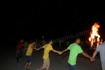 晚飯過后是篝火晚會(huì),大家一邊唱歌一邊圍著篝火跳舞,一天的疲憊似乎已經(jīng)被熱情趕走了,經(jīng)過一天的相處大家已經(jīng)從陌生變得熟悉,從一開始的拘謹(jǐn)變得輕松愜意。