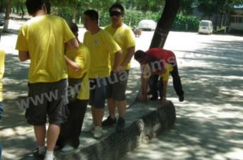 活動(dòng)的最后是“漫漫人生路”由一對(duì)隊(duì)員扮演啞人,一對(duì)隊(duì)員扮演盲啞人,由啞人扶著盲啞人過障礙,在整個(gè)過程中都不能發(fā)出一點(diǎn)聲音,整個(gè)過程中啞人都小心翼翼的扶著身邊的人,而盲啞人也完全信任的把自己交給啞人帶領(lǐng),這個(gè)項(xiàng)目除了考驗(yàn)大家的合作默契還要考驗(yàn)對(duì)自己同事的信任。