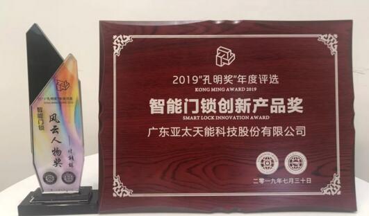 7月30日,2019全球智能門鎖企業(yè)家峰會(huì)在深圳召開。會(huì)上齊聚了國內(nèi)外智能鎖行業(yè)的眾多專家、精英企業(yè)代表。亞太天能憑借卓越的創(chuàng)新設(shè)計(jì)突出重圍,斬獲2019“孔明獎(jiǎng)”創(chuàng)新獎(jiǎng)與風(fēng)云人物獎(jiǎng)兩項(xiàng)大獎(jiǎng)。