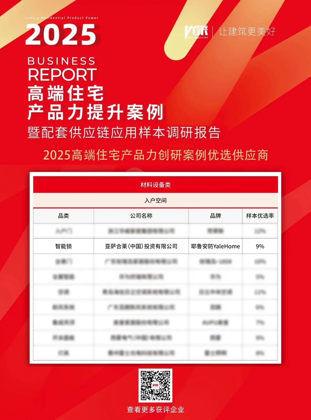 近日,亞薩合萊旗下品牌Yale耶魯榮膺「2025高端住宅產(chǎn)品力創(chuàng)研案例優(yōu)選供應(yīng)商品牌」,在2025中國房地產(chǎn)企業(yè)品牌價(jià)值測評成果發(fā)布會(huì)暨第十五屆房地產(chǎn)品牌發(fā)展高峰論壇上再獲行業(yè)權(quán)威認(rèn)可!此次論壇由中國房地產(chǎn)業(yè)協(xié)會(huì)指導(dǎo),上海易居房地產(chǎn)研究院、克而瑞集團(tuán)聯(lián)合主辦。作為全球智慧安防領(lǐng)域的百年品牌,亞薩合萊旗下品牌Yale耶魯憑借卓越的產(chǎn)品品質(zhì)、深厚的技術(shù)積淀及在高端住宅場景的出色應(yīng)用,成為智能鎖品類中備受行業(yè)認(rèn)可的標(biāo)桿力量。