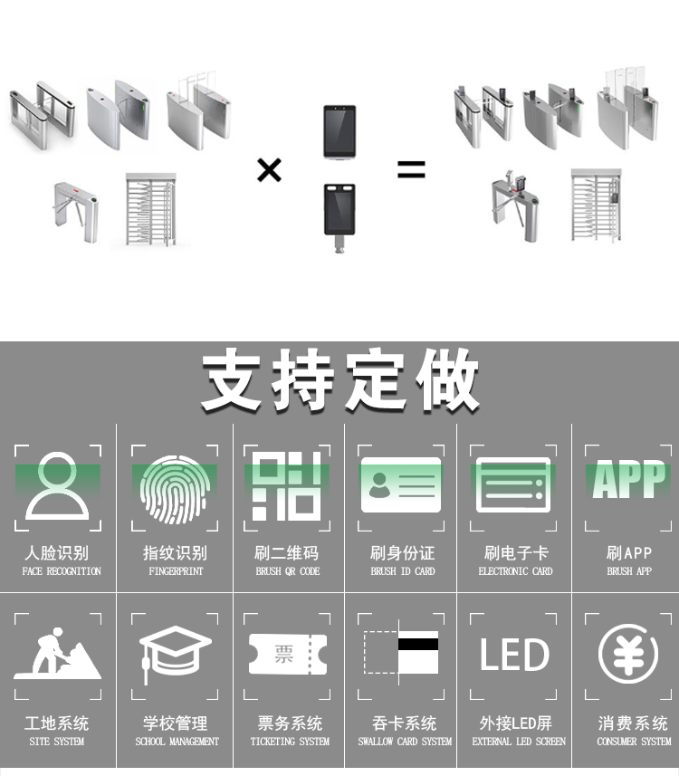 一般由兩臺(tái)機(jī)箱組成一個(gè)通道,通道寬0.55米左右,可以根據(jù)需求定制,適用于入口和出口處,用于單向或雙向通行人員控控制,通行速度快,提升通行效率。主要用于人多且高頻率進(jìn)出場(chǎng)合,比如地鐵、高鐵等軌道交通場(chǎng)合和日人員流動(dòng)交高的景區(qū),具有快速打開關(guān)閉、安全、方便等特點(diǎn),也是寫字樓大廈、智慧園區(qū)入口選擇較多的類型。