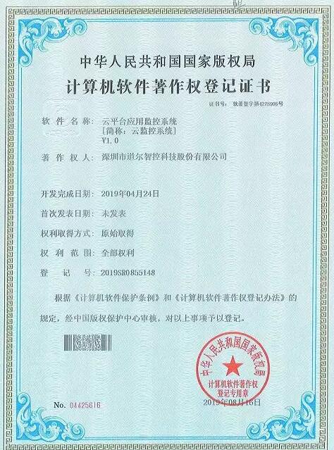 道爾智控(股票代碼:832966)近期先后獲得4項(xiàng)國家發(fā)明專利和軟件著作權(quán)。分別是國家知識產(chǎn)權(quán)局頒發(fā)的“LORA車位檢測器”《實(shí)用新型發(fā)明專利證書》;國家版權(quán)局頒發(fā)的“云平臺在線不宕機(jī)系統(tǒng)”、“云平臺應(yīng)用監(jiān)控系統(tǒng)”、“車牌相似度匹配算法系統(tǒng)”三項(xiàng)《計(jì)算機(jī)軟件著作權(quán)登記證書》。