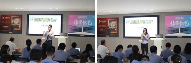 參賽選手來(lái)自營(yíng)銷(xiāo)部的大區(qū)經(jīng)理、招商經(jīng)理和其他部門(mén)部分骨干,每個(gè)月的大賽都相當(dāng)精彩,懷著爭(zhēng)當(dāng)演講家的理想,大家你追我趕,誓奪冠軍。