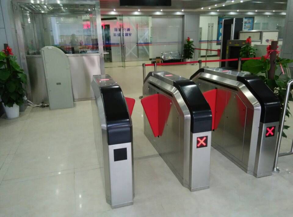 在車站非付費區(qū)與付費區(qū)之間安裝三通道檢票翼閘,其中一通道為雙向,其余一通道進站、一通道出站;
