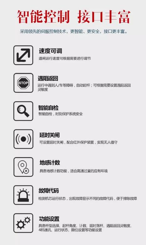 高速起桿,最快0.6s起桿;慢落桿,人性化安全設計;