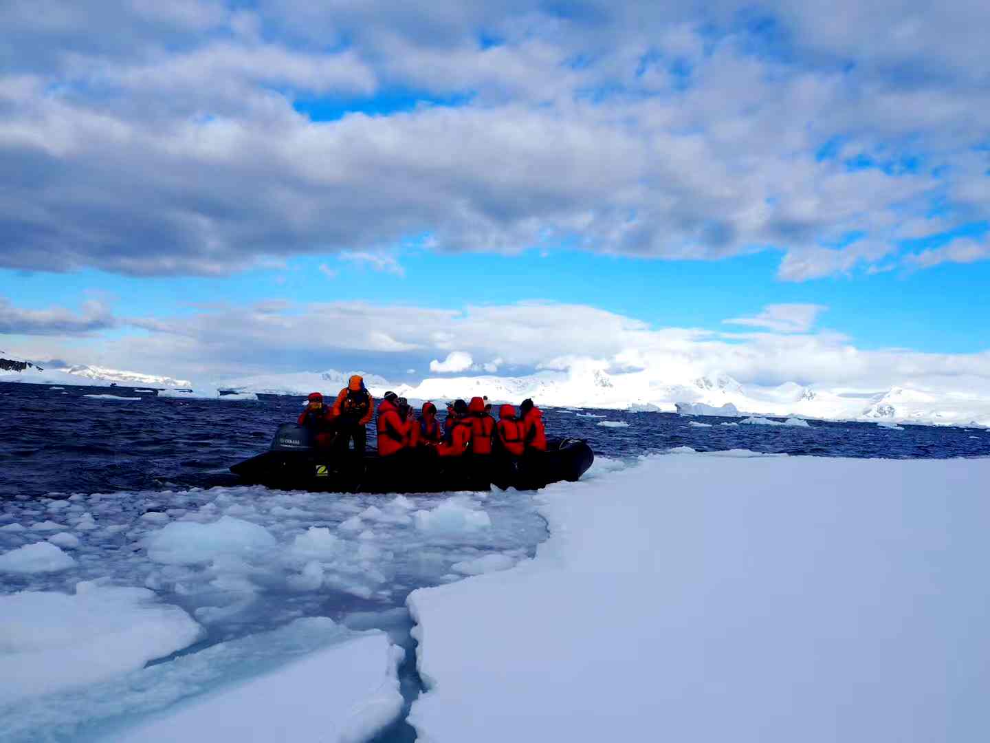乘坐沖鋒艇巡游南極奮進(jìn)島