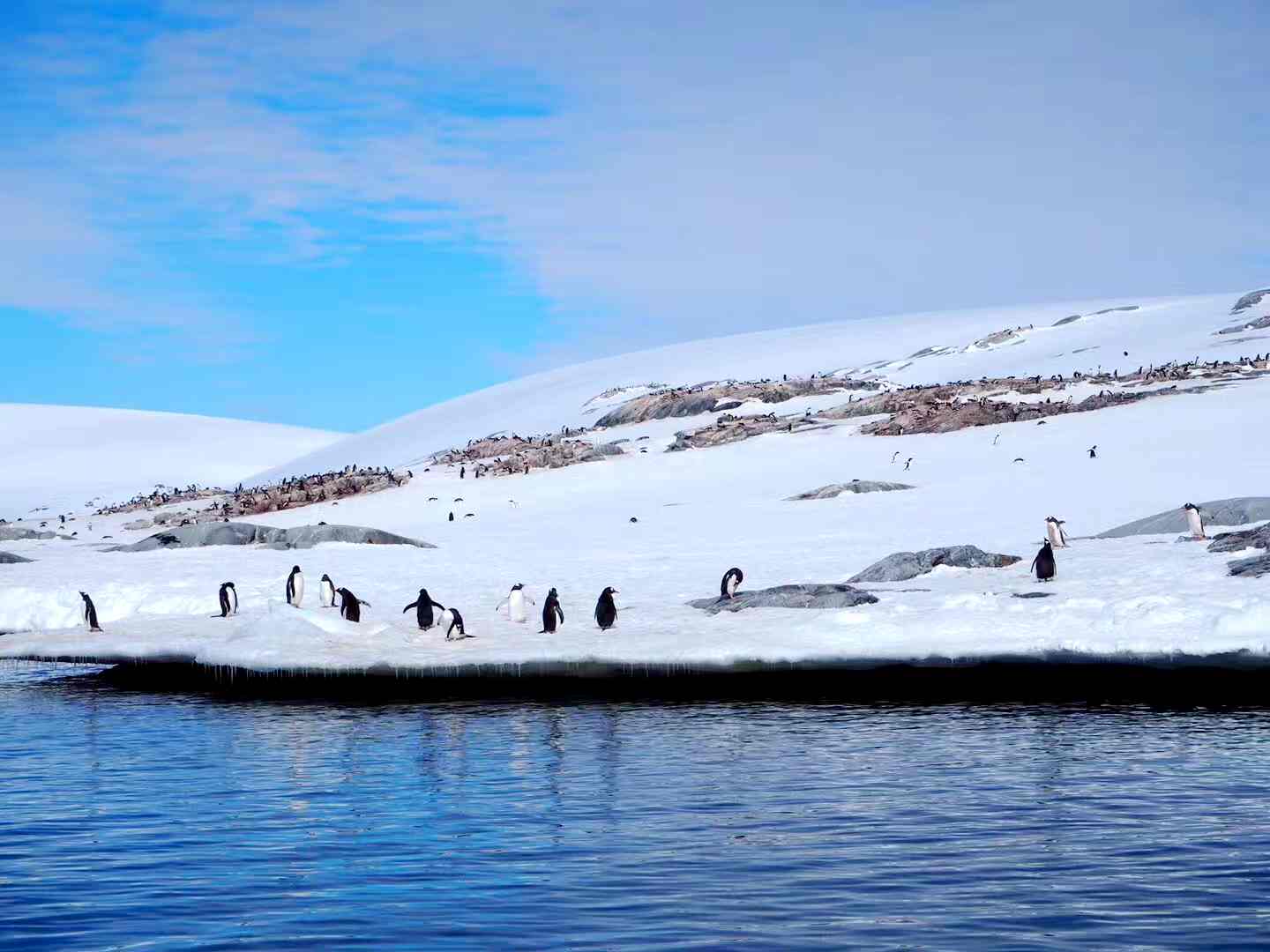 11點(diǎn),探險(xiǎn)隊(duì)抵達(dá)南極庫佛維爾島,并登島觀看企鵝。