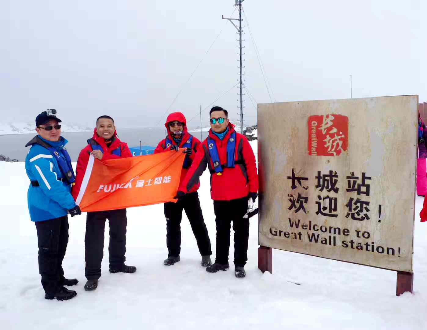 探險(xiǎn)隊(duì)在這冰天雪地里,熱血澎湃,興奮不已——我們終于讓富士智能的旗幟盡情飄揚(yáng)在這南極大陸上!
