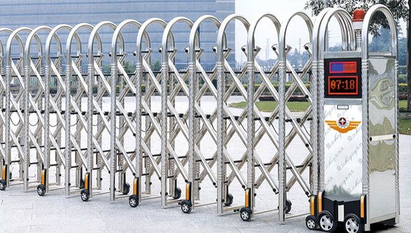 鶴壁伸縮門就是門體可以伸縮自由移動(dòng),來控制門洞大小、來控制行人或車輛的攔截和放行的一種門。伸縮門主要由門體、驅(qū)動(dòng)電機(jī),滑道、控制系統(tǒng)構(gòu)成。門體采用優(yōu)質(zhì)不銹鋼及鋁合金專用型材制作,采用平行四邊形原理鉸接,伸縮靈活行程大。驅(qū)動(dòng)器采用特種電機(jī)驅(qū)動(dòng),蝸桿蝸輪減速,并設(shè)有自動(dòng)離合或手動(dòng)離合器,自動(dòng)離合停電時(shí)可自動(dòng)啟閉,手動(dòng)離合停電時(shí)可手動(dòng)啟閉,控制系統(tǒng)有控制板,按鈕開關(guān),另可根據(jù)需求配備無線遙控裝置。