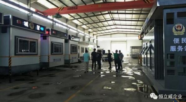 在我司銷售副總的帶領(lǐng)下,首先參觀了工廠成品展示區(qū):移動警務(wù)室、智能交通崗臺、便民警務(wù)站、勸導(dǎo)站、警銀亭......