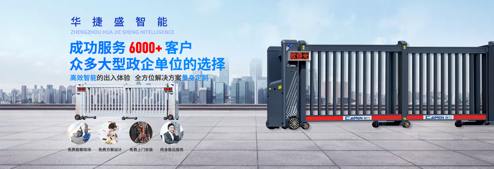 鄭州華捷盛智能科技有限公司是一家專業(yè)從事研發(fā)、生產(chǎn)、銷售、售后為一體的三道門解決方案服務(wù)商,三道門分為圍墻大門、建筑大門、廠房大門。圍墻大門產(chǎn)品有電動伸縮門、懸浮平移門、懸浮折疊門、分段平移門、直線平移門、停車管理系統(tǒng)、人行通道管理系統(tǒng)等;建筑大門產(chǎn)品有自動門、旋轉(zhuǎn)門、緊急逃生門、地彈門、肯德基門等;廠房大門產(chǎn)品有快速卷簾門、工業(yè)提升門、鋁合金推拉門、車庫翻板門等;此外還有地下車庫交通設(shè)施、視頻車位引導(dǎo)、超聲波車位引導(dǎo)、地磁車位引導(dǎo)、景觀配套產(chǎn)品(道閘、旗桿、崗?fù)?、護欄、車棚、升降柱、反恐路障)、一臉通(訪客、門禁、考勤、消費、梯控)、監(jiān)控、樓宇對講、巡更、紅外報警等產(chǎn)品。
