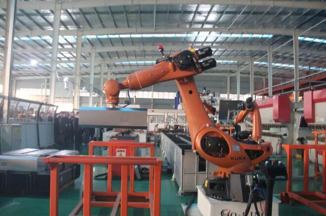 嘉賓重點參觀了“鈑金柔性生產(chǎn)線”、“智能加工中心”、“機(jī)器人焊接工作站“等智能化生產(chǎn)線,欣賞機(jī)器人協(xié)作完成的折彎、堆垛、焊接等一系列動作。