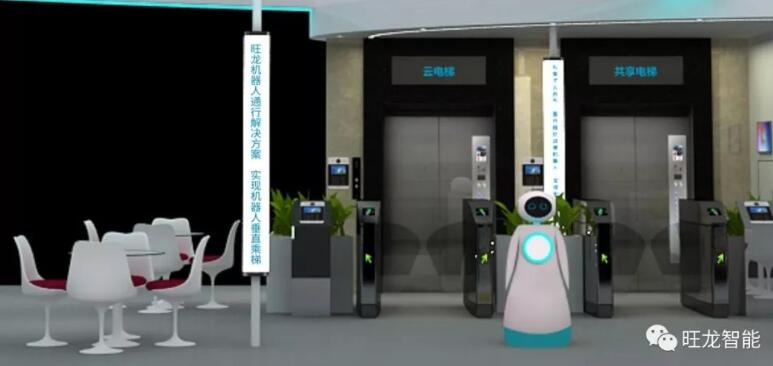 ▲旺龍機器人垂直乘梯解決方案成功落地萬科總部大樓