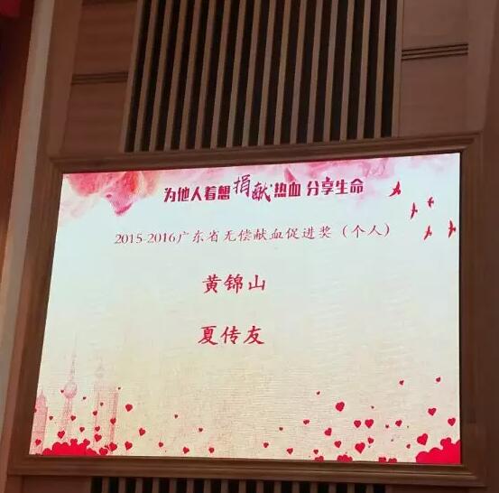 2015-2016年度廣東省無償獻血促進獎(個人)共兩名:黃錦山先生、夏傳友先生。