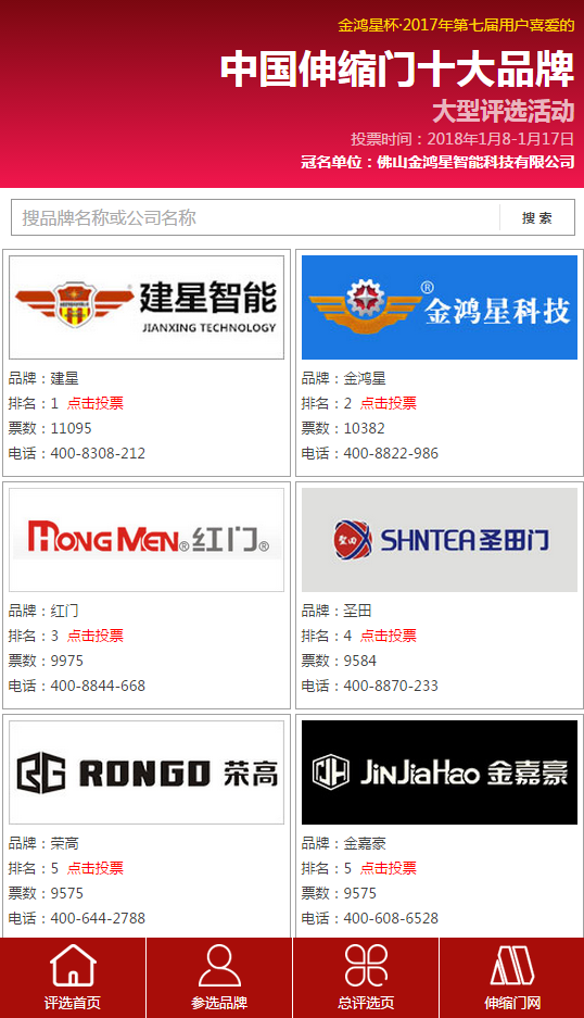 2018年新年伊始,在由中國伸縮門網(wǎng)舉辦的2017年“中國伸縮門十大品牌”評選活動中,建星智能再次榮膺用戶喜愛的伸縮門品牌第一名。本次評比,行業(yè)內(nèi)知名企業(yè)云集,建星智能獲得本次評比冠軍體現(xiàn)了廣大用戶對建星品牌的高度認可。20多年以來,建星人一直秉承“傾注精心,鑄就專業(yè)”的工匠精神,專注于伸縮門的研發(fā)制造,一直屹立于伸縮門行業(yè)的發(fā)展的前列。建星人信奉“以人為本,服務客戶”的理念,著力打造“天下建星是一家,相親相愛建星人”的品牌文化。 新的一年,公司將持續(xù)提高服務水平,更加重視產(chǎn)品質(zhì)量,持續(xù)完善教育和培訓系統(tǒng),全面提升企業(yè)形象!