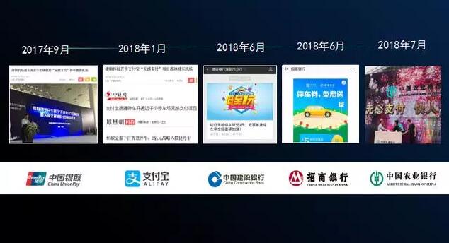 支付寶是最先開(kāi)始瞄準(zhǔn)停車(chē)場(chǎng)無(wú)感支付的支付機(jī)構(gòu)。2017年6月,支付寶宣布上海虹橋機(jī)場(chǎng)停車(chē)場(chǎng)即日升級(jí)為“黑科技”版的無(wú)現(xiàn)金停車(chē)場(chǎng),成為國(guó)內(nèi)首個(gè)啟用無(wú)感支付的智慧停車(chē)場(chǎng)。不久后,支付寶聯(lián)合捷順科技控股子公司“捷停車(chē)”在上海浦東機(jī)場(chǎng)推出“無(wú)感支付”停車(chē)場(chǎng)。此番合作后,支付寶更是一口咬定了“大出行”市場(chǎng)。2018年2月,螞蟻金服子公司2億下注捷停車(chē),從此支付寶攜手捷停車(chē)迅速在停車(chē)場(chǎng)無(wú)感支付領(lǐng)域“跑馬圈地”。