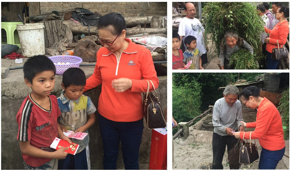在捐助學(xué)校學(xué)生物資后,基金會一行七人驅(qū)車趕往400多公里外貴州西北的大方縣,走訪基金會連續(xù)五年資助的100多名貧困大學(xué)生的家庭。去往貧困大學(xué)生家庭的路上,山路盤旋,路途遙遠。其中居住在小屯鄉(xiāng)半山腰的黃敏同學(xué)家中,今年9月剛考上遵義醫(yī)學(xué)與科技學(xué)院臨床專業(yè)。屋內(nèi)四壁殘破、滿目瘡痍,家里沒兩件像樣的家具,雨天漏水,夜晚甚難入睡。由于田少無固定收入,父親靠打散工掙錢。其叔叔一家更是凄慘,叔叔車禍去世,嬸嬸遠走改嫁,留下一對孩子,大的10歲,小的7歲,僅靠年邁的爺爺奶奶養(yǎng)護。家中最新的家具竟是基金會2013年捐助的愛心小書桌,看到小書桌有種相逢不如偶遇的親切??粗⒆拥痛怪劬?,兩手不自覺的卷著衣角,怯怯的站在角落,碰巧爺爺駝著背割草回家那情形,理事一行忍不住留下熱淚,除了給他們送了米、油、牛奶以表心意,不禁紛紛慷慨解囊捐資。 理事長劉翠英、理事洪禮曉返回酒店后為他們擔(dān)心徹夜難眠,思索著如何更好的幫助他們。