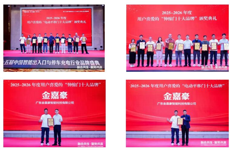 第十五屆智能出入口與停車充電行業(yè)十大品牌評(píng)比頒獎(jiǎng)盛典在佛山順利舉行?!敖鸺魏馈逼放茟{借卓越的產(chǎn)品品質(zhì)、領(lǐng)先的技術(shù)創(chuàng)新及深厚的市場(chǎng)口碑,從數(shù)百家參選企業(yè)中脫穎而出,榮獲“伸縮門十大品牌”及“電動(dòng)平移門十大品牌”兩項(xiàng)殊榮。