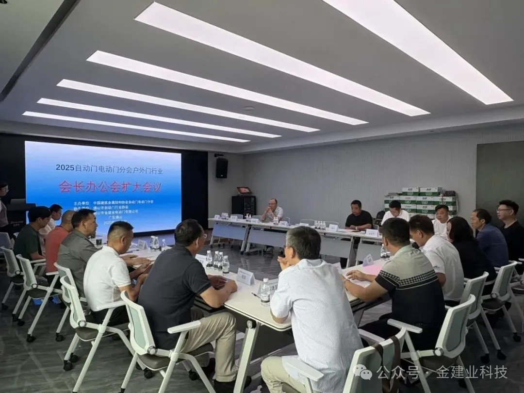 2025年7月10日,2025自動(dòng)門電動(dòng)門分會(huì)戶外門行業(yè)會(huì)長辦公會(huì)擴(kuò)大會(huì)議在佛山金建業(yè)電動(dòng)門有限公司成功舉辦。 自動(dòng)門電動(dòng)門分會(huì)副會(huì)長戴建國、自動(dòng)門電動(dòng)門分會(huì)副會(huì)長劉軍、自動(dòng)門電動(dòng)門分會(huì)執(zhí)行會(huì)長王穎和陳標(biāo)明、佛山市自動(dòng)門行業(yè)協(xié)會(huì)會(huì)長羅明輝等參與本次會(huì)議。作為承辦單位,金建業(yè)攜手行業(yè)同仁,聚焦戶外門業(yè)新趨勢(shì),共探高質(zhì)量發(fā)展路徑。