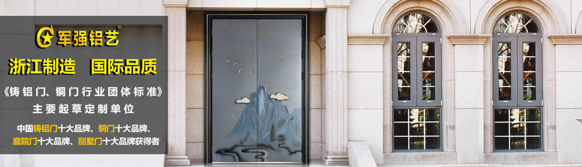 武義軍強鋁業(yè)有限公司成立于1997年,是一家集設計、研發(fā)、銷售、服務融為一體的門類企業(yè)。經(jīng)過近數(shù)年的發(fā)展,公司發(fā)展為銅藝、鋁藝、城市小非標、農(nóng)村非標別墅大門四大系列產(chǎn)品的大型門業(yè)企業(yè)。公司擁有四大事業(yè)部,“軍強”主要為公司制造鑄鋁門、庭院門、鋁圍欄扶手、鋁卡等鋁制產(chǎn)品;“金黃制造”主要為公司制造銅門,不銹鋼銅門,銅車庫門,銅屏風及銅裝鉓制品;“普斯帝”主要為公司生產(chǎn)城市小非標門和標準防盜門;“德普曼”主要為公司生產(chǎn)鋅合金農(nóng)村非標大門。在2020年軍強門業(yè)以技術突破,結構創(chuàng)新成為了行業(yè)中唯一一家金屬門類產(chǎn)品齊全的標桿企業(yè),奠定了軍強公司的實力!