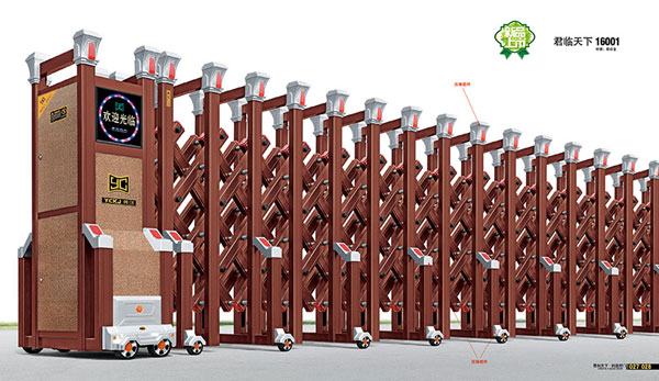 普洱伸縮門就是門體可以伸縮自由移動,來控制門洞大小、來控制行人或車輛的攔截和放行的一種門。伸縮門主要由門體、驅(qū)動電機(jī),滑道、控制系統(tǒng)構(gòu)成。門體采用優(yōu)質(zhì)不銹鋼及鋁合金專用型材制作,采用平行四邊形原理鉸接,伸縮靈活行程大。驅(qū)動器采用特種電機(jī)驅(qū)動,蝸桿蝸輪減速,并設(shè)有自動離合或手動離合器,自動離合停電時可自動啟閉,手動離合停電時可手動啟閉,控制系統(tǒng)有控制板,按鈕開關(guān),另可根據(jù)需求配備無線遙控裝置。