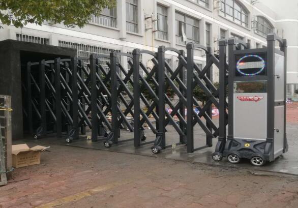 衢州伸縮門主要由門體、驅(qū)動電機,滑道、控制系統(tǒng)構(gòu)成。門體采用優(yōu)質(zhì)不銹鋼及鋁合金專用型材制作,采用平行四邊形原理鉸接,伸縮靈活行程大。驅(qū)動器采用特種電機驅(qū)動,蝸桿蝸輪減速,并設(shè)有自動離合或手動離合器,自動離合停電時可自動啟閉,手動離合停電時可手動啟閉,控制系統(tǒng)有控制板,按鈕開關(guān),另可根據(jù)需求配備無線遙控裝置。