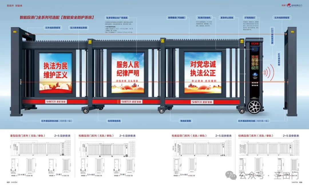 智能段滑門全系列可選配的【智能安全防護系統(tǒng)】。紅外線防爬報警為您的企業(yè)構(gòu)筑起堅固的安全防線。機頭紅外感應(yīng)防碰和門體的壓力防夾感應(yīng)裝置完美協(xié)同,無論是在運行過程中遭遇障礙物,還是門體關(guān)閉時感應(yīng)到壓力,都能迅速做出反應(yīng),有力確保人員和物品的安全。紅外感應(yīng)防夾功能(內(nèi)外各一組)搭配高清識別相機,不僅貼心呵護每一次通行,有效避免夾傷事故的發(fā)生,還能精準識別來訪人員和車輛進出,為您對大門的管理更高效便捷。