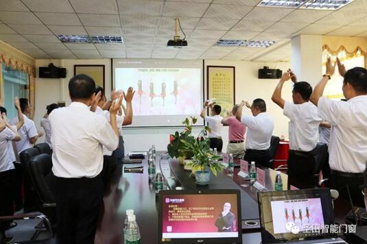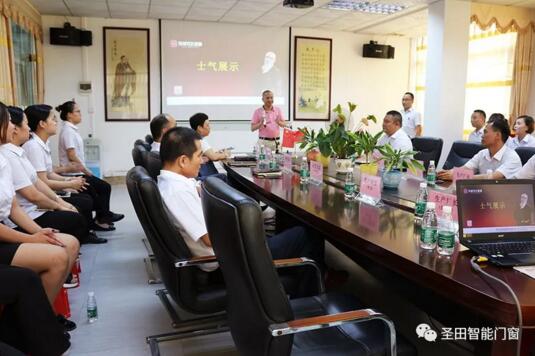 此次會(huì)議有周仲輝董事長,李潔蓮總經(jīng)理帶領(lǐng)家居門、伸縮門各主管以及辦公室全體人員,廠長參與。
