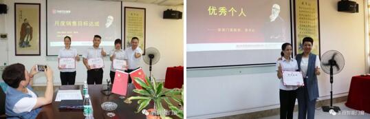 士氣展示后,由我們圣田的大家長周董總結(jié)七月份,為我們已經(jīng)到來的八月加油打氣。周董簡潔而明了的演講,讓我們對(duì)八月業(yè)績充滿信心。之后,舒總為我們公布了七月的PK數(shù)據(jù),字里行間都透露著每個(gè)人辛苦耕耘的成果。凡成功者,必有其成功的法門,在這個(gè)激憤人心的時(shí)刻,周董、李總隆重地為我們的優(yōu)秀團(tuán)隊(duì)和優(yōu)秀個(gè)人頒發(fā)了榮譽(yù)證書,每個(gè)領(lǐng)獎(jiǎng)人洋溢的笑容似乎在訴說著自己不辭辛勞的證明和此刻勝利的激動(dòng)心情。