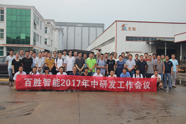 2017年8月7日,“百勝智能2017年中研發(fā)工作會議”在百勝智能總部隆重召開。百勝智能董事長劉潤根先生、董事長助理劉子堯先生、艾視特總經(jīng)理劉小超先生、百勝智能總經(jīng)理助理黃永恒、采購總監(jiān)熊祥,百勝及聯(lián)勝研發(fā)部、銷售部、品質(zhì)部、工藝部負(fù)責(zé)人,及百勝智能、聯(lián)勝智能全體工程師(60余人),9個營銷中心、辦事處負(fù)責(zé)人共同出席會議!