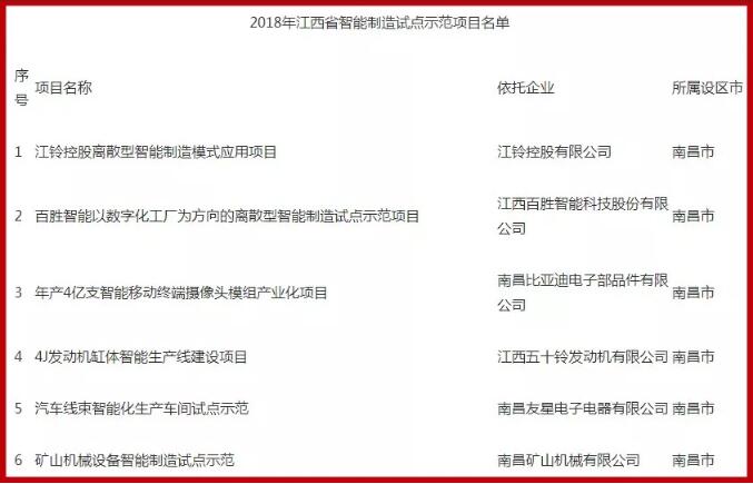 【喜訊】百勝智能入選2018年江西省智能制造試點(diǎn)示范項(xiàng)目