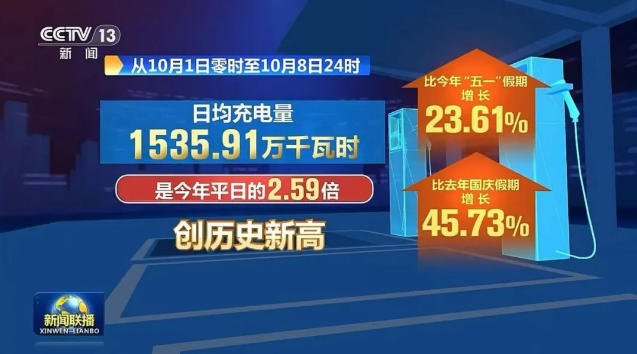 據(jù)10月9日央視《新聞聯(lián)播》報(bào)道,2025年國(guó)慶中秋假期(10月1日零時(shí)至10月8日24時(shí)),全國(guó)高速公路新能源汽車充電迎來“爆發(fā)式”增長(zhǎng):累計(jì)充電次數(shù)達(dá)516.9萬(wàn)次,充電量突破1.23億千瓦時(shí);日均充電量1535.91萬(wàn)千瓦時(shí),較今年“五一”假期增長(zhǎng)23.61%、較去年國(guó)慶假期增長(zhǎng)45.73%,創(chuàng)下歷史新高。