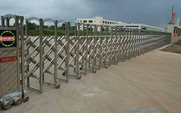 1、伸縮門體:伸縮門體是由門體大框、交叉撐、軸(定軸、滑軸)及門體輪等主要部件組成。門體整體為金屬結(jié)構(gòu),按材質(zhì)又分為不銹鋼門體、鋁合金門體、壓鑄鋁門體。