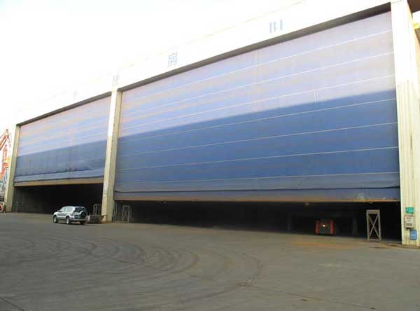 無錫工業(yè)門采用雙層高強(qiáng)度PVC簾布,寬24米,高12米,防墜落安全裝置,在安全性能上做了合理布局,該工程地點(diǎn)位于長江邊,風(fēng)力較大,因此設(shè)計(jì)抗風(fēng)壓力在12級(jí),無錫出安智能工業(yè)門。