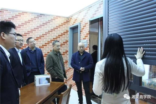 各領(lǐng)導參觀了湘聯(lián)集團體驗館的六大板塊:“序廳-模擬陽光房-榮譽館-工業(yè)物流區(qū)-金融安防區(qū)-智能家居”,展廳講解員現(xiàn)場展示了遮陽產(chǎn)品的強大功能,讓現(xiàn)場所有人深切感受到遮陽的現(xiàn)代智能性。