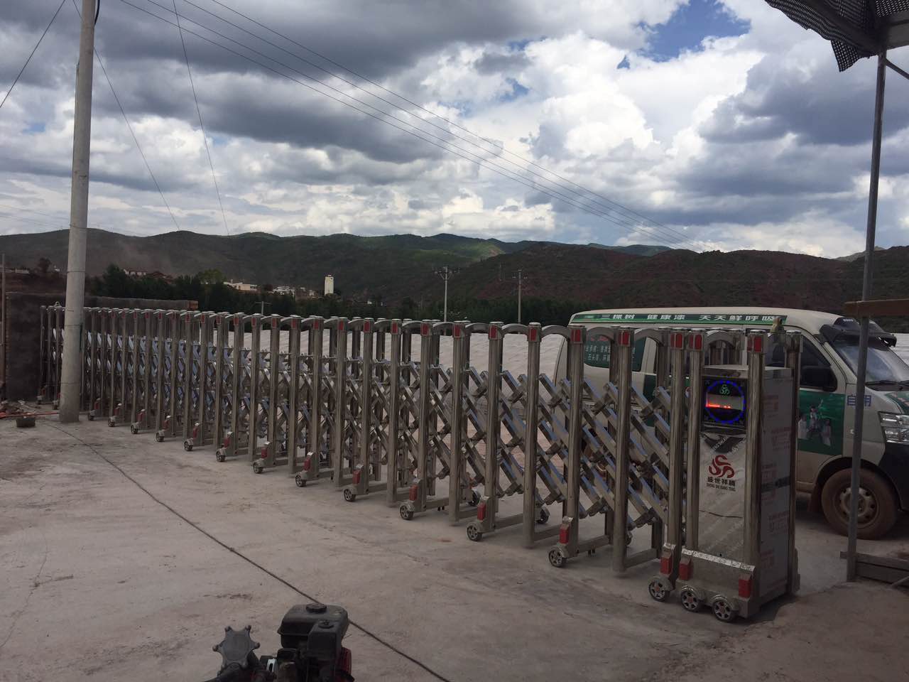 自貢出安智能電動(dòng)伸縮門門體采用優(yōu)質(zhì)不銹鋼及普通方管管材制作,采用平行四邊形原理鉸接,伸縮靈活行程大。廣泛適用于各類工礦廠房、車間、倉(cāng)庫(kù)、機(jī)房、車庫(kù)等場(chǎng)合作為活動(dòng)圍墻,大大擴(kuò)大了電動(dòng)伸縮門的應(yīng)用范圍。電動(dòng)伸縮門的驅(qū)動(dòng)器采用特種電機(jī)驅(qū)動(dòng),蝸桿蝸輪減速,并配有手動(dòng)離合器,停電時(shí)可手動(dòng)啟閉,電動(dòng)伸縮門的控制系統(tǒng)有控制板,按鈕開(kāi)關(guān),另可根據(jù)用戶需求配備無(wú)線遙控裝置。電動(dòng)伸縮門所采用的電機(jī)系特殊的專用渦輪蝸桿式電機(jī),因?yàn)槠鋫鲃?dòng)原理特殊性,穩(wěn)定性高,輸出力矩大、噪音小,速度適中。