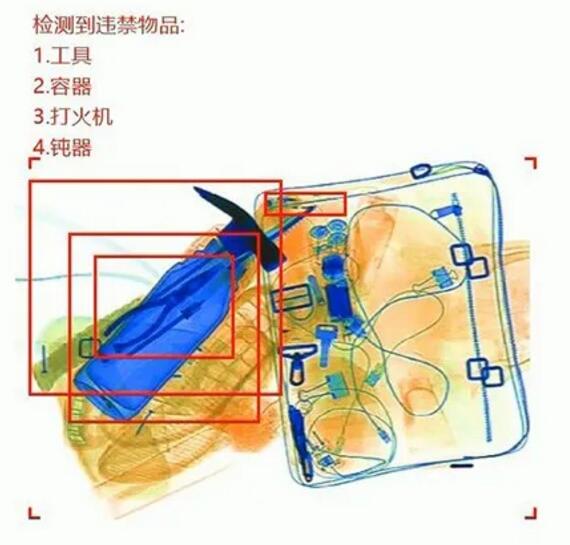 通過系統(tǒng)的應用,物品在安檢機過檢時,只需一秒即可自動識別違禁物品圖像,并在屏幕上顯示提示框、標注出違禁物品種類,準確標記出其位置和類別,方便工作人員開包再查。所有違禁物品的檢出率高于95%,真正讓違禁物品無所遁形,守護人們出行安全。